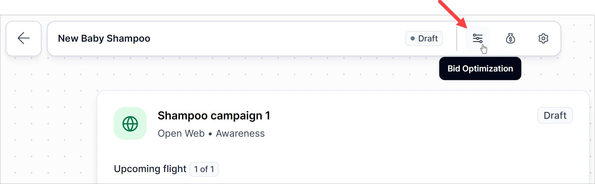 To view the CTR Control field, open an existing campaign on the enhanced Canvas, go to the top of the canvas, and click the Bid Optimization icon.