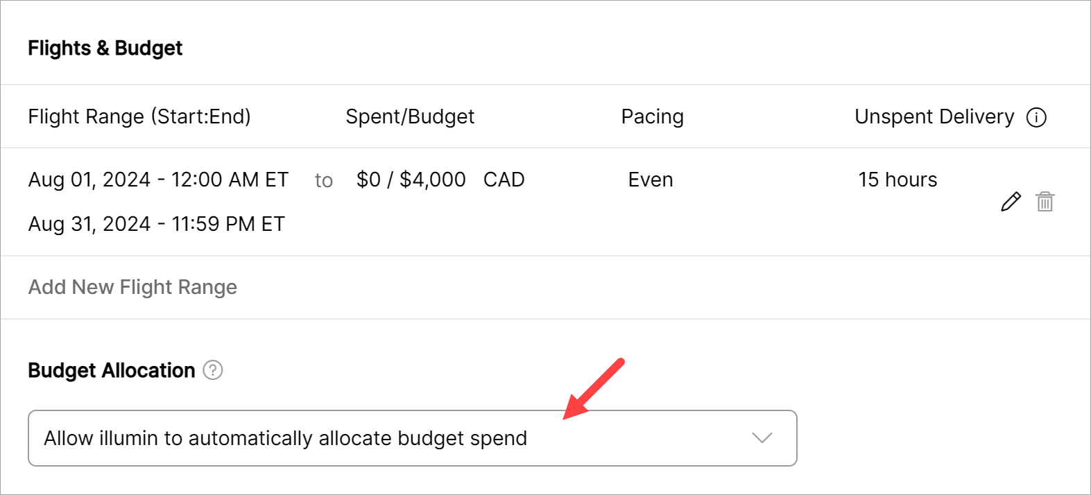 Go to the Budget & Scheduling heading and click Edit. Scroll down and click the Add New Flight Range link.